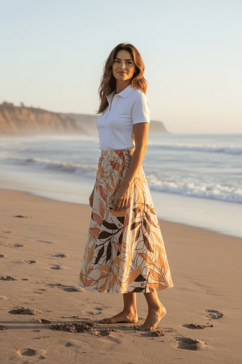 Falda de largo 3/4 con cintura elástica y un print único que destaca por su estilo y personalidad. Su caída suave brinda comodidad y movimiento, ideal para looks frescos y versátiles. ¡La tela no se arruga!