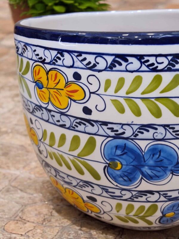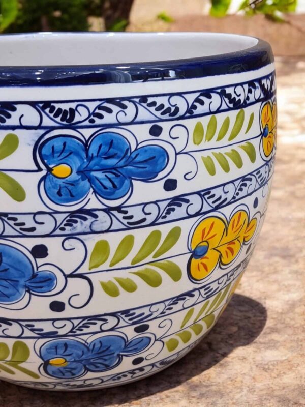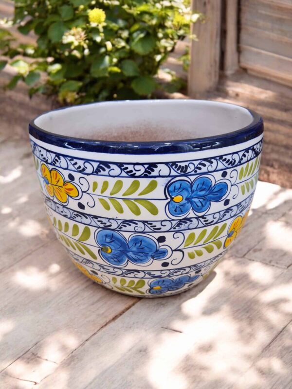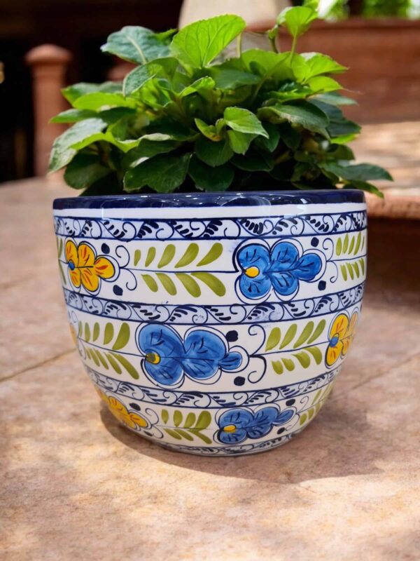 Maceta de cerámica hecha y pintada a mano por artesanos limeños. Ideales para orquídeas, plantas aromáticas, plantas de temporada, etc.