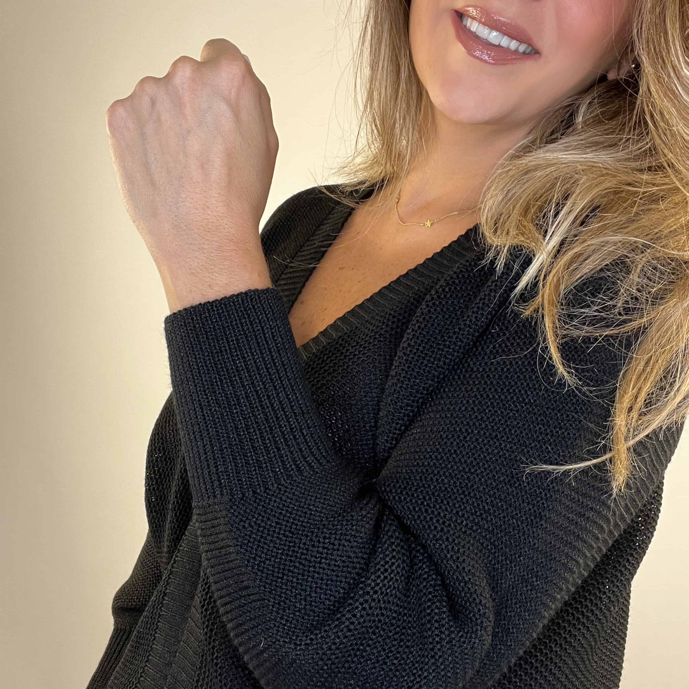 Sweater calado hecho de 100% algodón pima. Súper ligero con cuello en V. ¡Súper estilo!