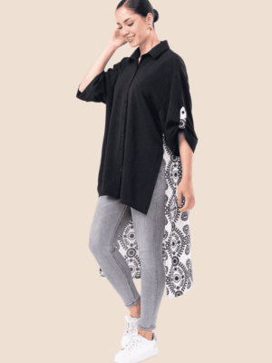 Blazer de lino y algodón. Un Diseño fluido y relajado, con mangas amplias que aportan movimiento y frescura. Ideal para un look sofisticado sin esfuerzo.