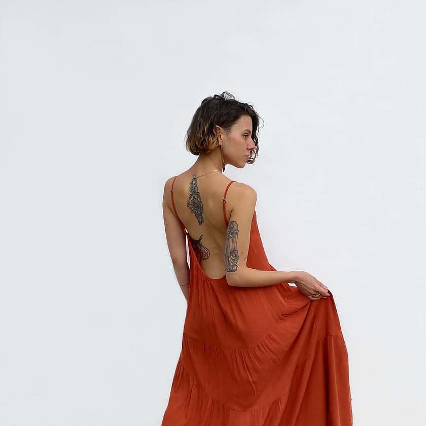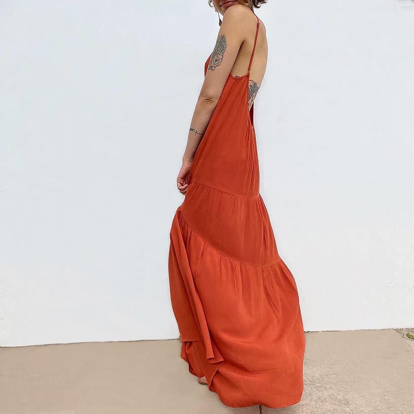 Vestido de rayón. Tiene escote delantero redondo, espalda súper rebajada con tiras regulables y vuelos bajos asimétricos. ¡¡¡Un súper look para el verano!!!