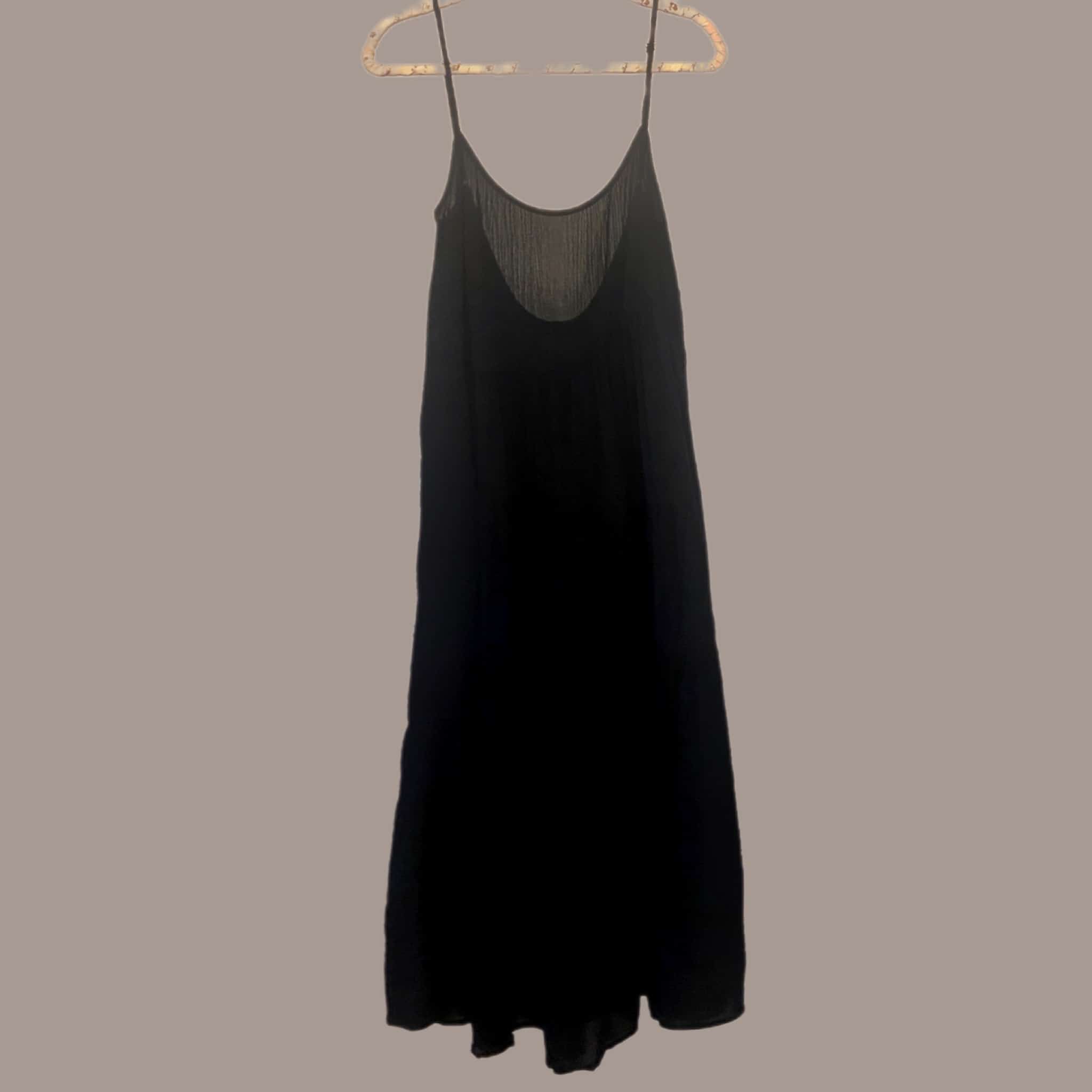 El Vestido Vuelos es de rayón. Tiene escote delantero redondo, espalda súper rabajada con tiras regulables y vuelos bajos asimétricos.