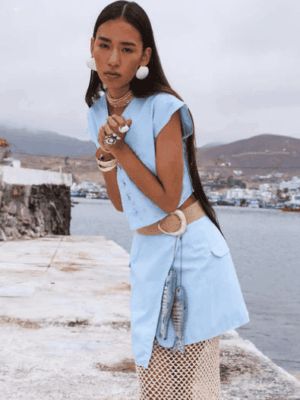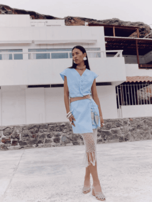 Anqa Celeste – Conjunto Blusa y Falda